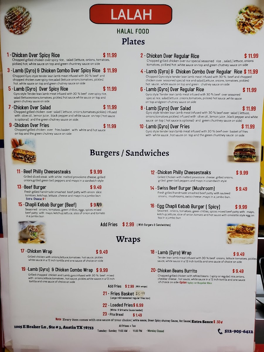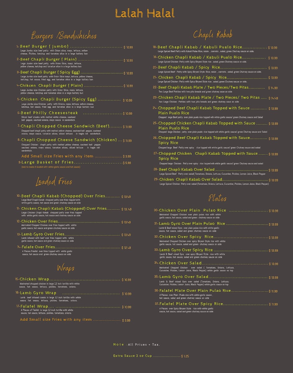 If you’re craving a feast that hits all the right notes, the Lalah Halal Menu is where your taste buds get their adventure. From juicy, perfectly spiced chicken kebabs to tender lamb dishes that melt in your mouth, every option feels like a little celebration on your plate. The menu doesn’t shy away from variety either - you can mix and match flavorful sides, fresh salads, and savory rice dishes to create a meal that’s exactly how you like it. What’s cool is how each dish balances bold, aromatic spices with comforting familiarity, so whether you’re in the mood for something classic or a bit more daring, there’s always a spot for it here. Drinks and accompaniments are thoughtfully paired too, giving you the chance to round out the meal without feeling overwhelmed. Walking through the menu, you can almost picture the sizzle, the aromas, and the vibrant colors of each plate arriving at your table, making it easy to get excited about trying a bit of everything. If variety, flavor, and satisfying portions are what you’re after, this menu definitely delivers.