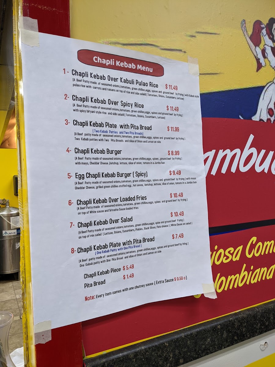 Chopped beef chapli patty with melted yellow cheese, sauteed bell pepper, sauteed onions, mayo sauce, tomatoe slices, sliced lettuce in hagie roll sandwhich.